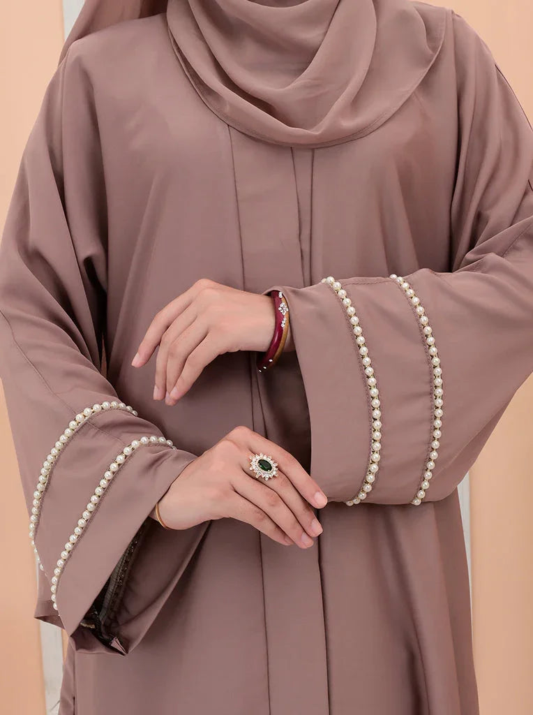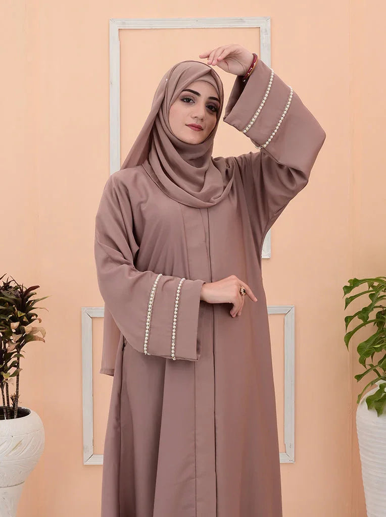 Front open abaya blended with pearls to give it a catchy look.
