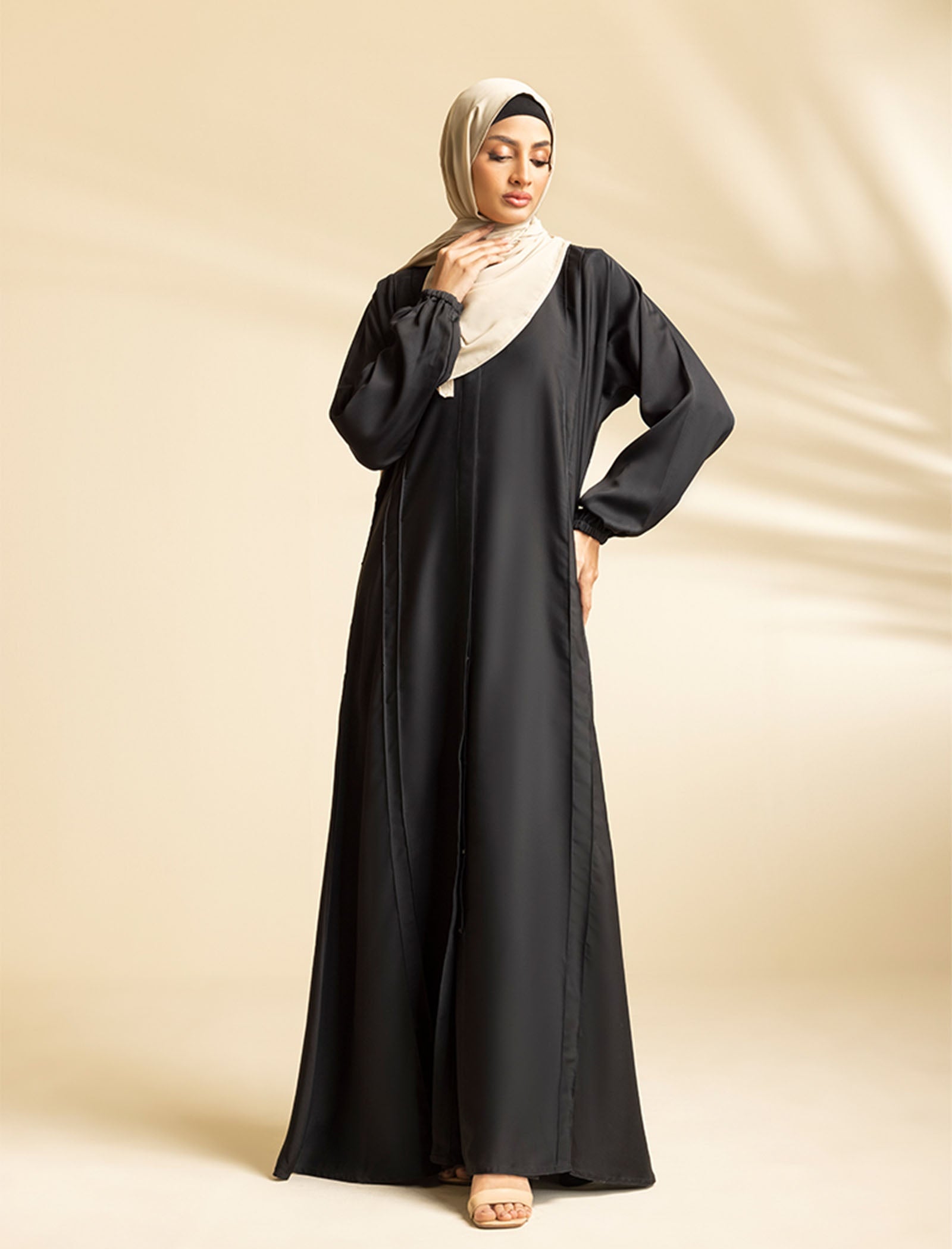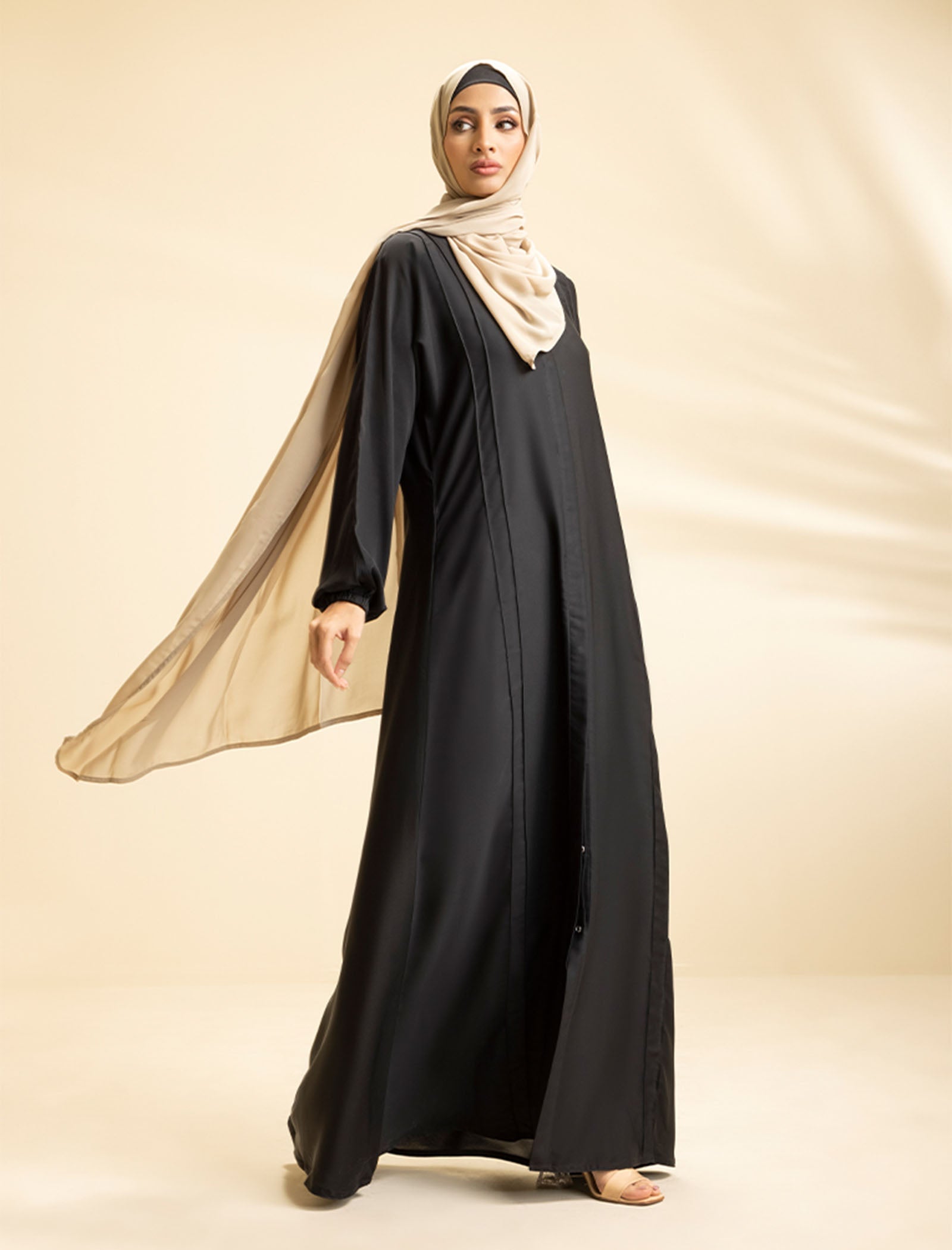 Experience effortless elegance with this Front Open Button Down Abaya, designed for your everyday look. Its classic black color and practical features make it a must-have for those who value both style and functionality.