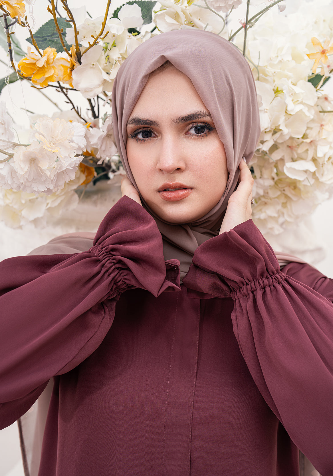 Embrace modern elegance with our front open daily wear abaya, showcasing puffy ribbed sleeves. The contrasting hijab highlights the color beautifully, and the side pocket offers practical convenience, making this piece both stylish and functional.